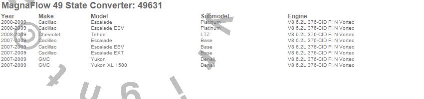 Below is an abreviated list of applications for the Direct Fit Catalytic Converter.