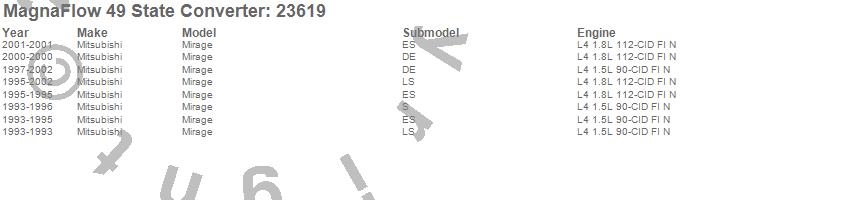 Below is an abreviated list of applications for the Direct Fit Catalytic Converter.