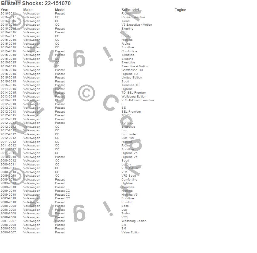 Below is an abreviated list of applications for the B4 Series OE Replacement Suspension Strut Assembly.