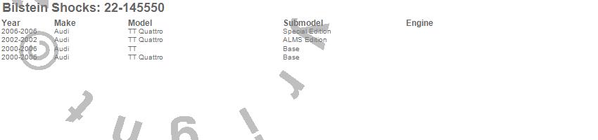 Below is an abreviated list of applications for the B4 Series OE Replacement Suspension Strut Assembly.