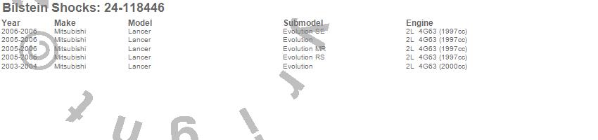 Below is an abreviated list of applications for the B6 Series HD Shock Absorber.