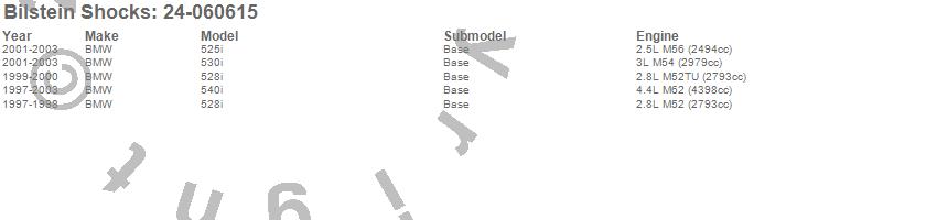 Below is an abreviated list of applications for the B6 Series HD Shock Absorber.