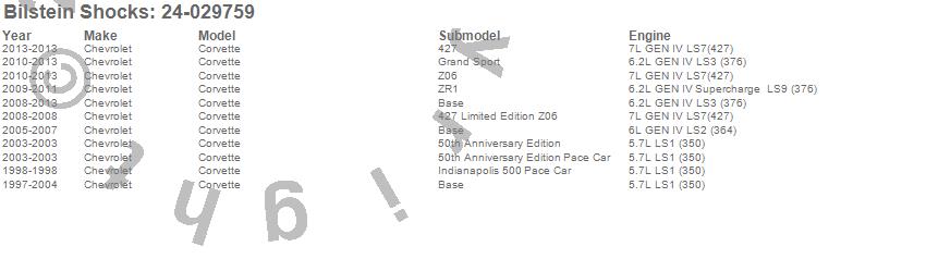 Below is an abreviated list of applications for the B6 Series HD Shock Absorber.