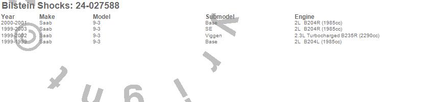 Below is an abreviated list of applications for the B8 Series SP Shock Absorber.