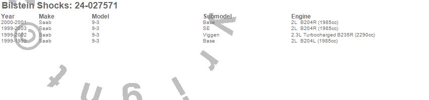 Below is an abreviated list of applications for the B6 Series HD Shock Absorber.