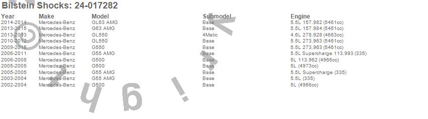 Below is an abreviated list of applications for the B4 Series OE Replacement Shock Absorber.