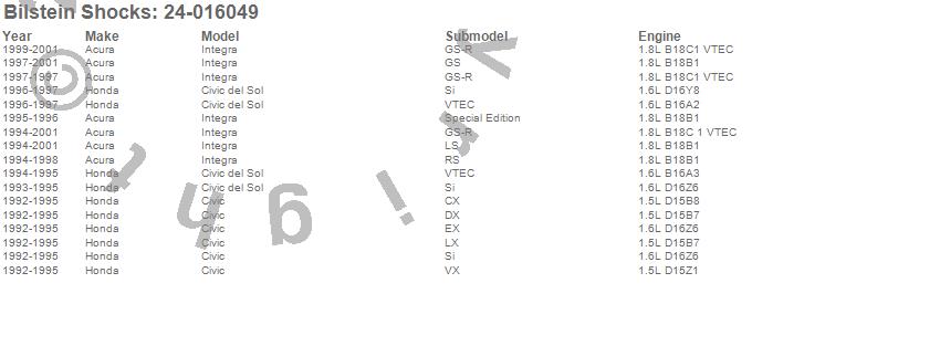 Below is an abreviated list of applications for the B6 Series HD Shock Absorber.