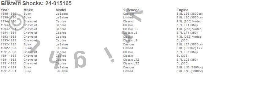 Below is an abreviated list of applications for the B6 Series HD Shock Absorber.
