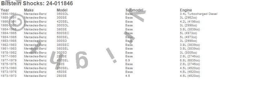 Below is an abreviated list of applications for the B4 Series OE Replacement Shock Absorber.