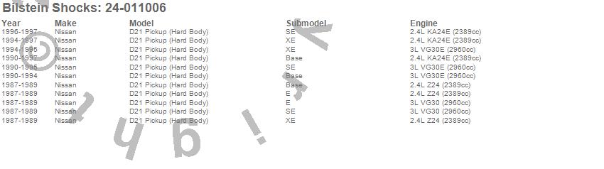Below is an abreviated list of applications for the 4600 Series Shock Abosorber.