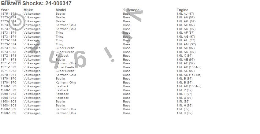 Below is an abreviated list of applications for the B6 Series HD Shock Absorber.