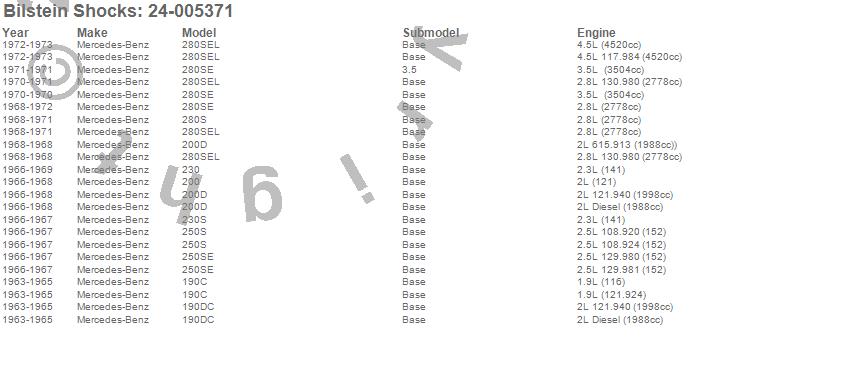 Below is an abreviated list of applications for the B4 Series OE Replacement Shock Absorber.