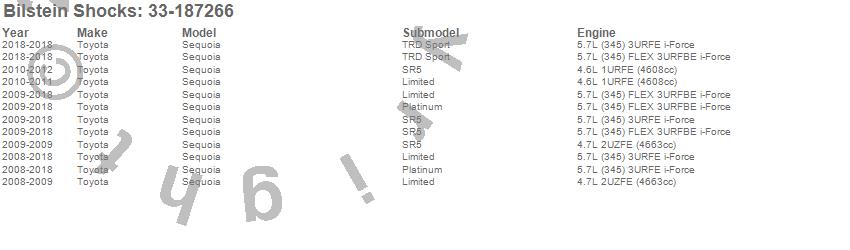 Below is an abreviated list of applications for the 4600 Series Shock Abosorber.