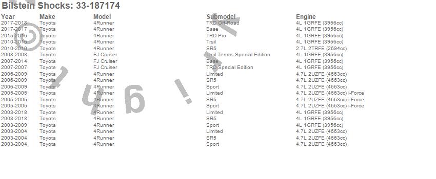 Below is an abreviated list of applications for the 5100 Series Shock Absorber.