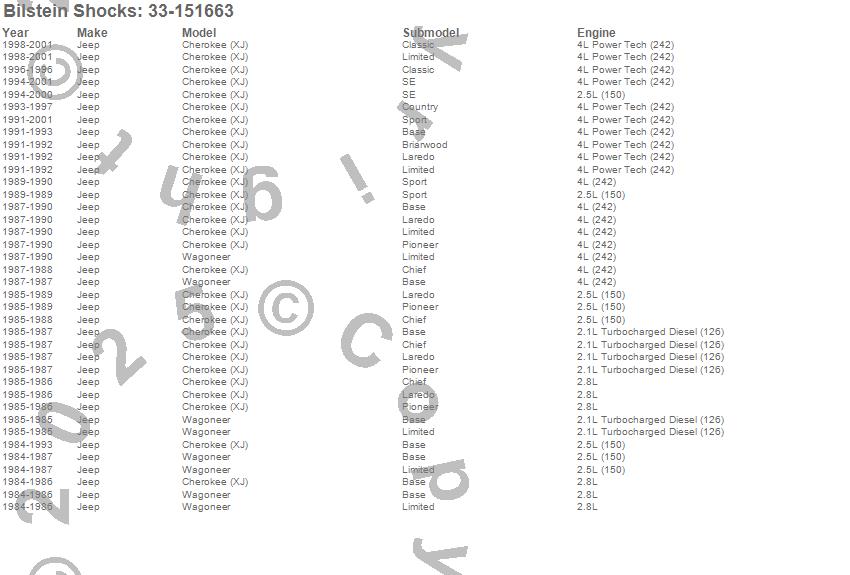 Cherokee (XJ), Wagoneer, Jeep, 2001, 2000, 1999, 1998, 1997, 1996, 1995, 1994, 1993, 1992, 1991, 1990, 1989, 1988, 1987, 1986, 1985 more…