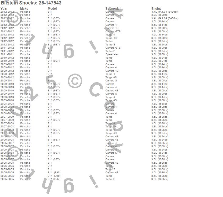 Below is an abreviated list of applications for the B4 Series OE Replacement DampTronic Shock Absorber.
