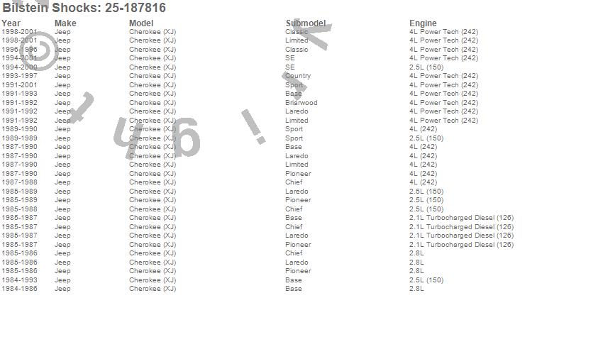 Cherokee (XJ), Jeep, 2001, 2000, 1999, 1998, 1997, 1996, 1995, 1994, 1993, 1992, 1991, 1990, 1989, 1988, 1987, 1986, 1985, 1984 more…