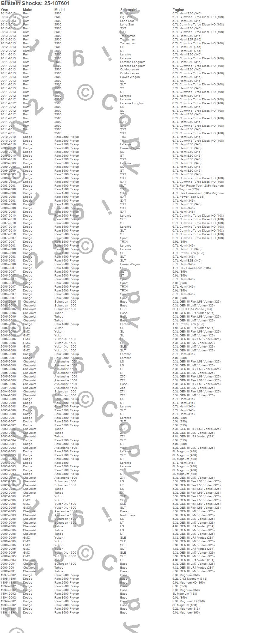 2500, 3500, Avalanche 1500, Ram 1500, Ram 2500, Ram 3500, Suburban 1500, Tahoe, Yukon, Yukon XL 1500, Chevrolet, Dodge, GMC, Ram, 2013, 2012, 2011, 2010, 2009, 2008 more…