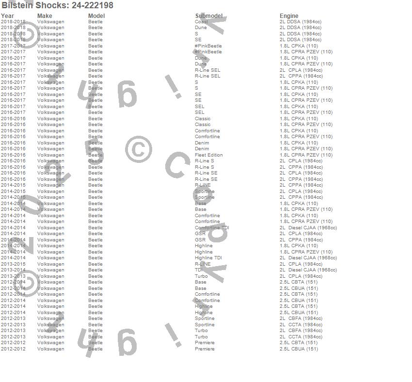 Below is an abreviated list of applications for the B6 Series HD Shock Absorber.