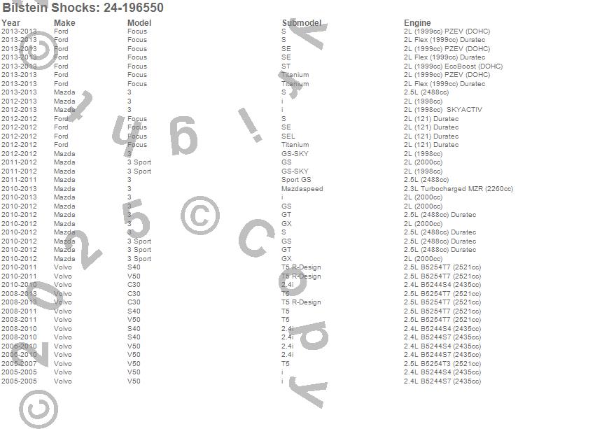 3, 3 Sport, C30, Focus, S40, V50, Ford, Mazda, Volvo, 2013, 2012, 2011, 2010, 2009 more…