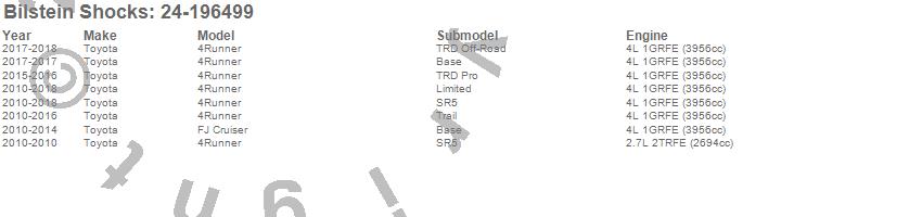 Below is an abreviated list of applications for the 5100 Series Ride Height Adjustable Shock Absorber.