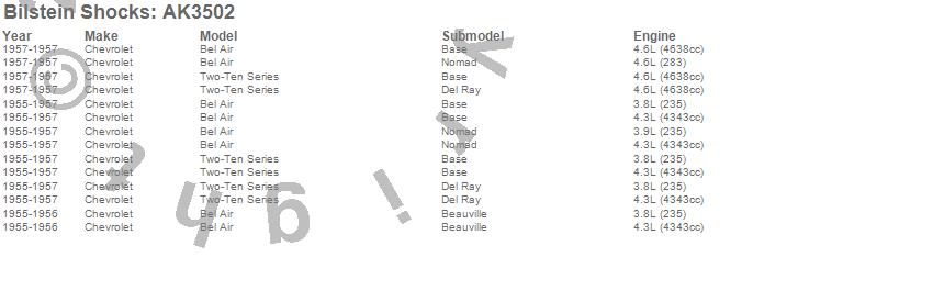 Below is an abreviated list of applications for the B6 Series HD Shock Absorber.