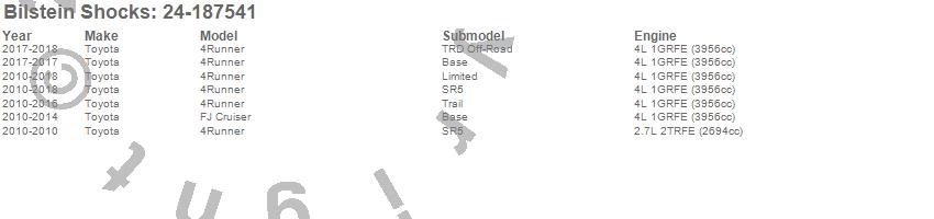 Below is an abreviated list of applications for the 4600 Series Shock Abosorber.