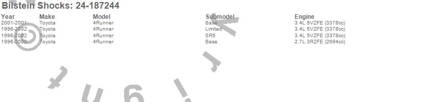 Below is an abreviated list of applications for the 4600 Series Shock Abosorber.