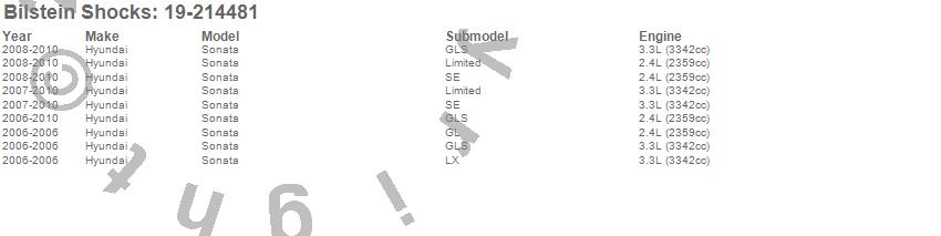 Below is an abreviated list of applications for the B4 Series OE Replacement Shock Absorber.