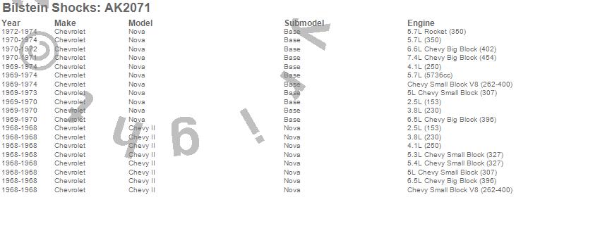 Below is an abreviated list of applications for the B6 Series HD Shock Absorber.