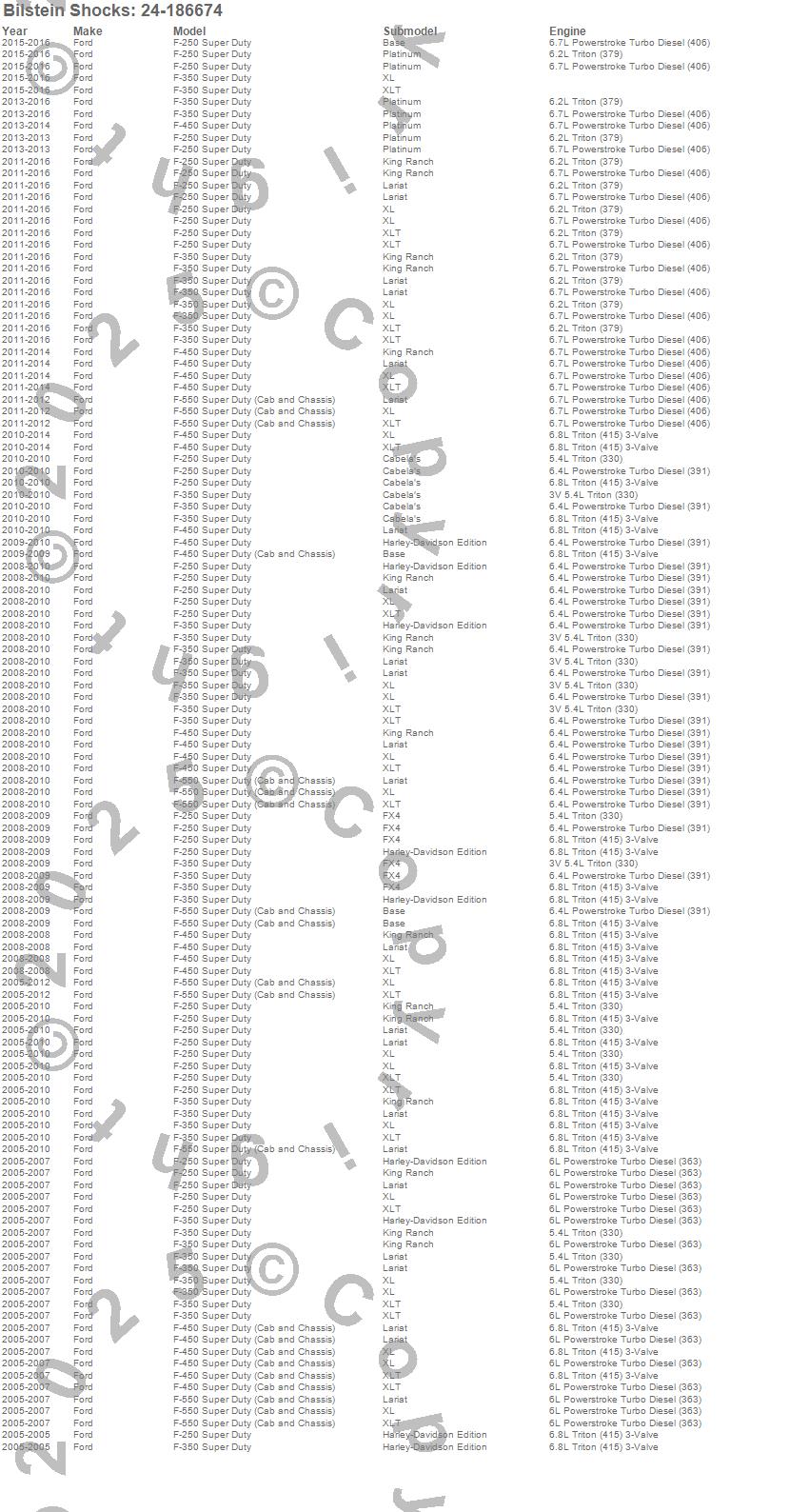Below is an abreviated list of applications for the 4600 Series Shock Abosorber.