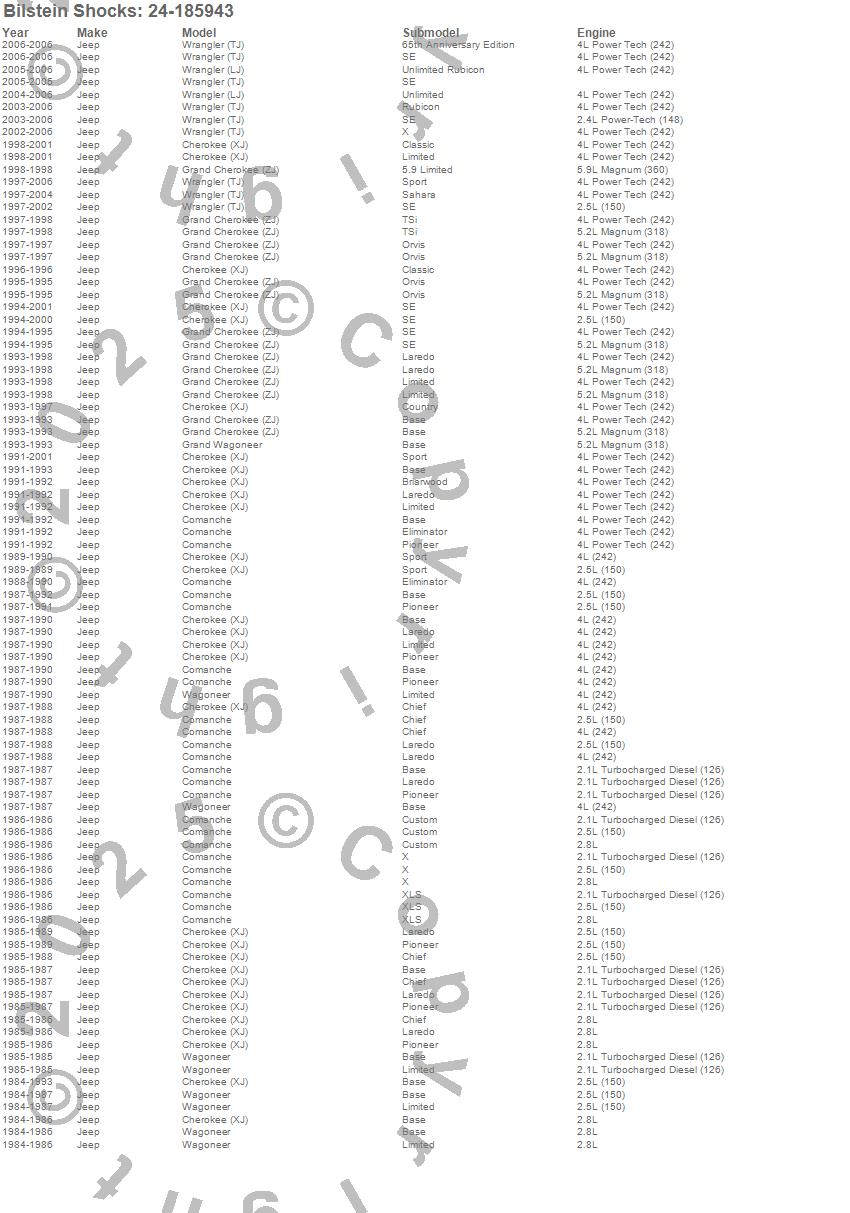 Cherokee (XJ), Comanche, Grand Cherokee (ZJ), Grand Wagoneer, Wagoneer, Wrangler (LJ), Wrangler (TJ), Jeep, 2006, 2005, 2004, 2003, 2002, 2001, 2000, 1999, 1998, 1997, 1996, 1995 more…