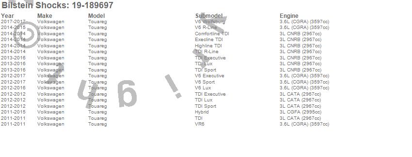 Below is an abreviated list of applications for the B4 Series OE Replacement Shock Absorber.