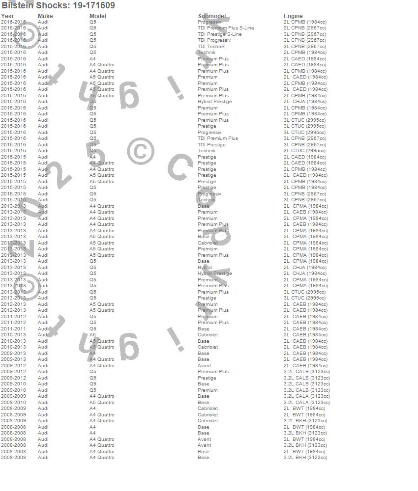 Below is an abreviated list of applications for the B4 Series OE Replacement Shock Absorber.