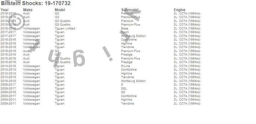 Below is an abreviated list of applications for the B4 Series OE Replacement Shock Absorber.