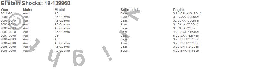 Below is an abreviated list of applications for the B4 Series OE Replacement Shock Absorber.