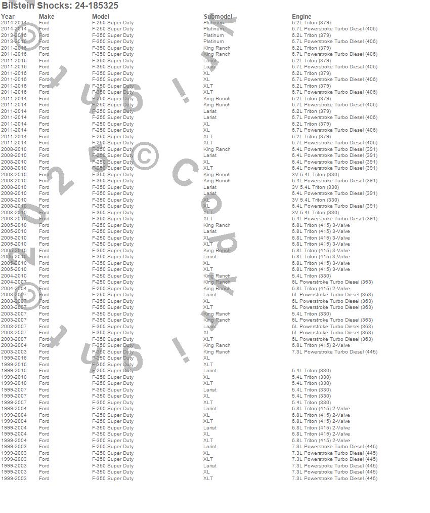 Below is an abreviated list of applications for the 4600 Series Shock Abosorber.