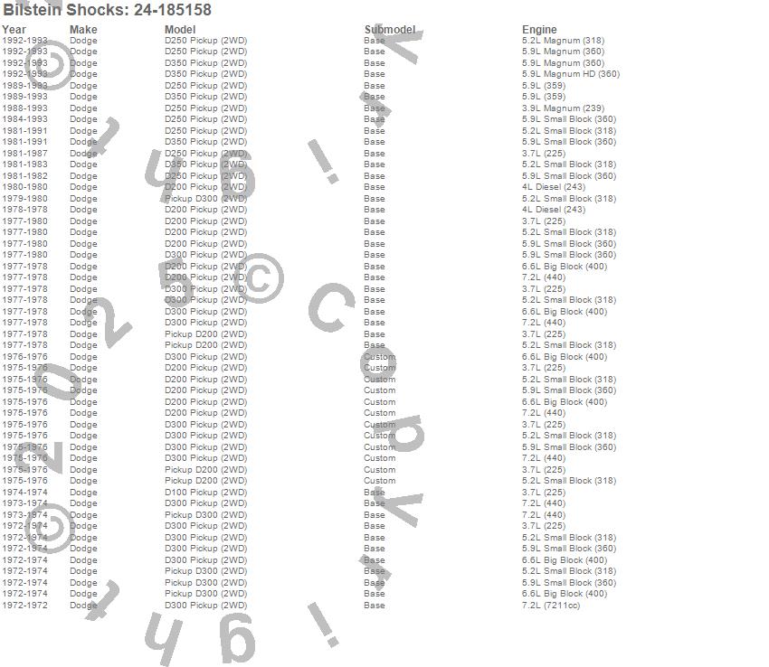 Below is an abreviated list of applications for the 4600 Series Shock Abosorber.