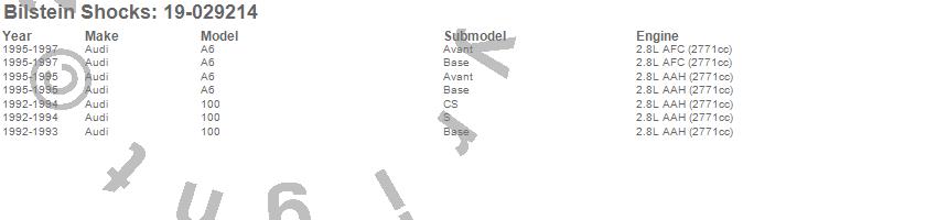 Below is an abreviated list of applications for the B4 Series OE Replacement Shock Absorber.