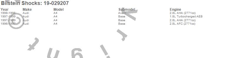 Below is an abreviated list of applications for the B4 Series OE Replacement Shock Absorber.