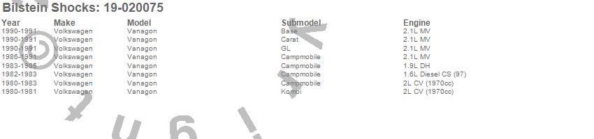 Below is an abreviated list of applications for the B4 Series OE Replacement Shock Absorber.
