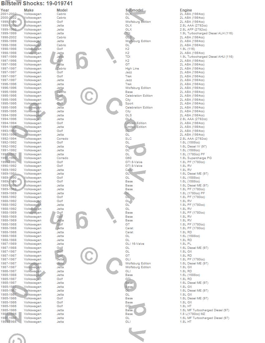 Below is an abreviated list of applications for the B4 Series OE Replacement Shock Absorber.