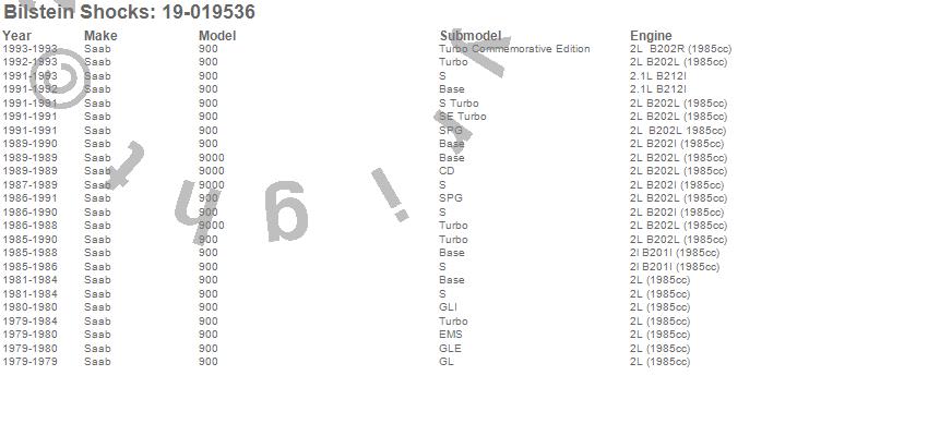 Below is an abreviated list of applications for the B4 Series OE Replacement Shock Absorber.