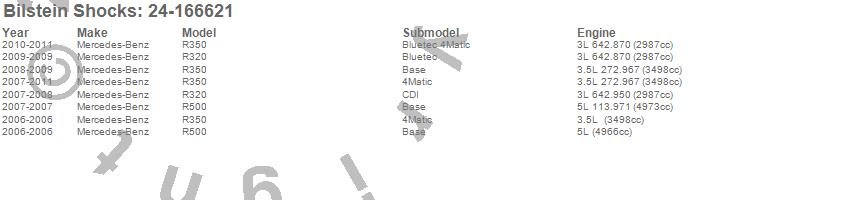 Below is an abreviated list of applications for the B4 Series OE Replacement Shock Absorber.