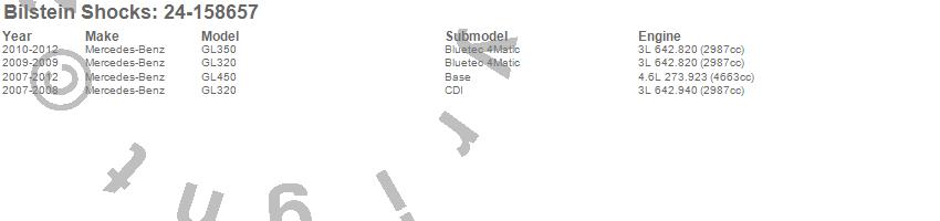Below is an abreviated list of applications for the B4 Series OE Replacement Air Shock Absorber.
