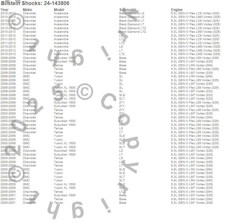 Avalanche, Avalanche 2500, Suburban 1500, Tahoe, Yukon, Yukon XL 1500, Chevrolet, GMC, 2013, 2012, 2011, 2010, 2006, 2005, 2004, 2003, 2002, 2001, 2000 more...