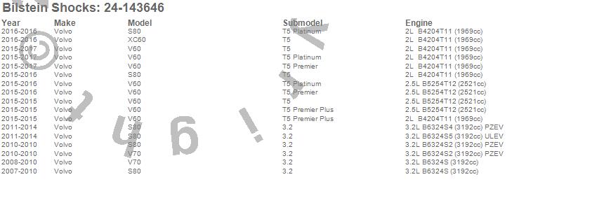 Below is an abreviated list of applications for the B8 Series SP Shock Absorber.