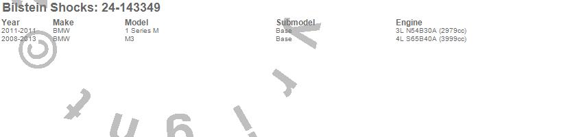 Below is an abreviated list of applications for the B6 Series HD Shock Absorber.