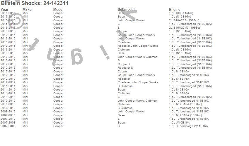 Below is an abreviated list of applications for the B8 Series SP Shock Absorber.