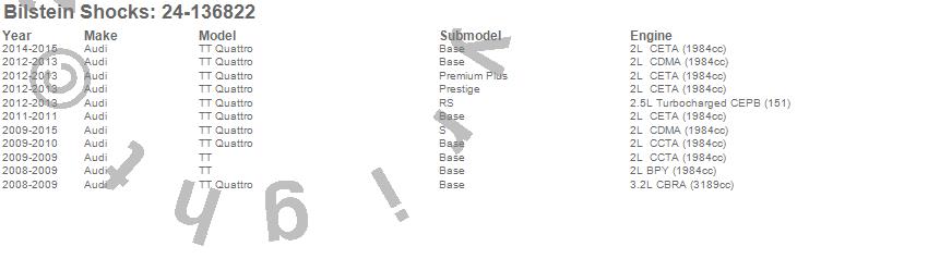Below is an abreviated list of applications for the B6 Series HD Shock Absorber.